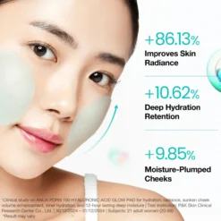 Anua PDRN 100 Hyaluronic Acid Glow Pad is a hydration glow pad infused with PDRN, hyaluronic acid, and collagen, featuring a dual-fabric design for delivering deep moisture.