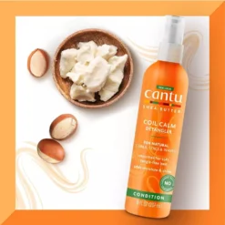 Painful kinks and knots are no match for Cantu Shea Butter for Natural Hair Coil Calm Detangler 8 oz! The calming, softening formula is designed for easy detangling that helps hair retain its length. Crafted with the shea butter formula and no harsh ingredients, this sulfate-free detangler infuses moisture, hydration, and slip that restores curls to their beautiful natural state. Say goodbye to painful detangling and enjoy styling curls with confidence. To use, spray a generous amount onto damp hair and comb through tangles and knots beginning at the ends and working toward the roots. Since the beginning, you’ve pushed us to advance skin and hair science to honor your locs, your curls, your waves, your braids, your natural. At Cantu, we support your journey with care and we celebrate all the styles you rock!