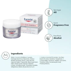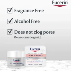 Eucerin® Q10 Anti-Wrinkle Face Cream is an anti-wrinkle moisturizing cream made for dry, sensitive skin. It is specially formulated to be non-irritating and to gently reduce the look of wrinkles and the signs of aging.