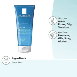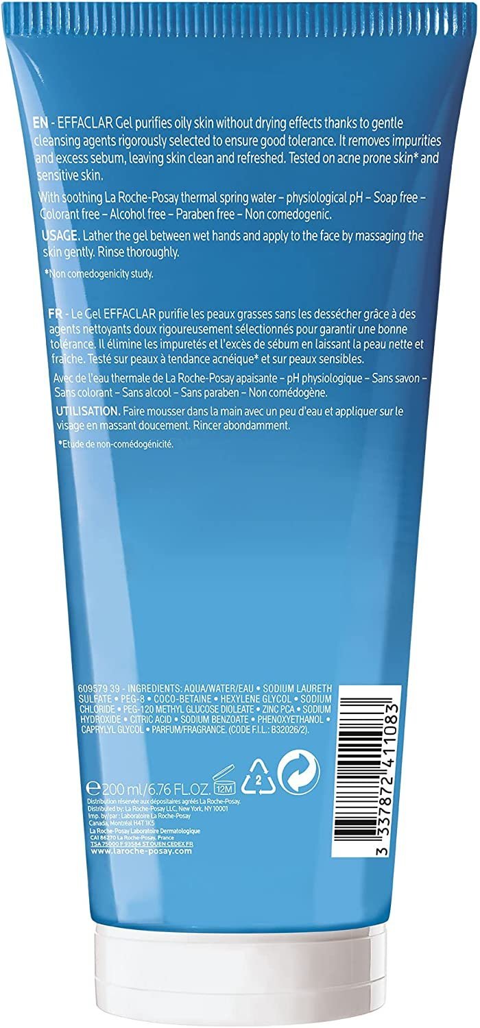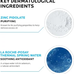 Gently purifies the skin thanks to cleansing agents selected to respect sensitive skin. Targets the excess of sebum and impurities with soothing, anti-irritant La Roche-Posay thermal spring water.